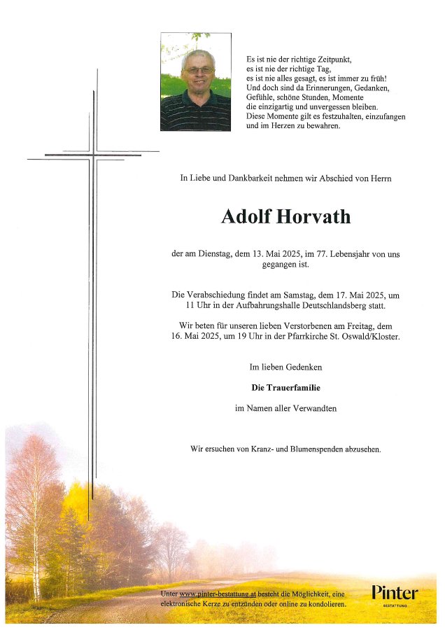 geboren am 13. Januar 1949 in Sallegg gestorben am 13. Mai 2025 in Groß St. Florian
