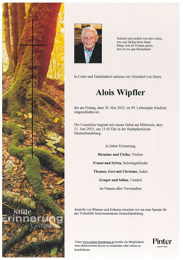 geboren am 2. Juni 1926 in Wildbach gestorben am 30. Mai 2025 in Deutschlandsberg