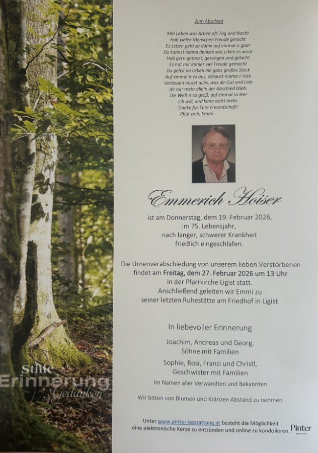geboren am 5. April 1951 in Krottendorf gestorben am 19. Februar 2026 in Voitsberg