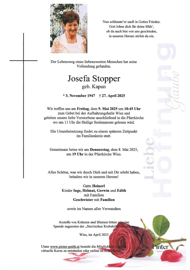 geboren am 3. November 1947 in Steyeregg gestorben am 27. April 2025 in Deutschlandsberg