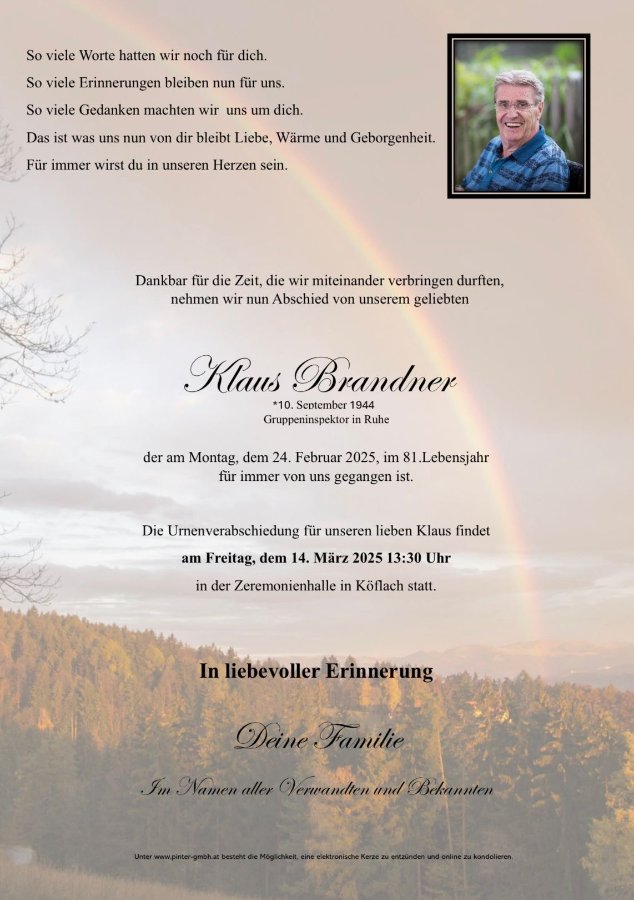 Ruhe in Frieden Klaus.Danke für deine Kameradschaft. Wir hatten eine schöne gemeinsame Dienstzeit.Aufrichtiges Beileid der Trauerfamilie.