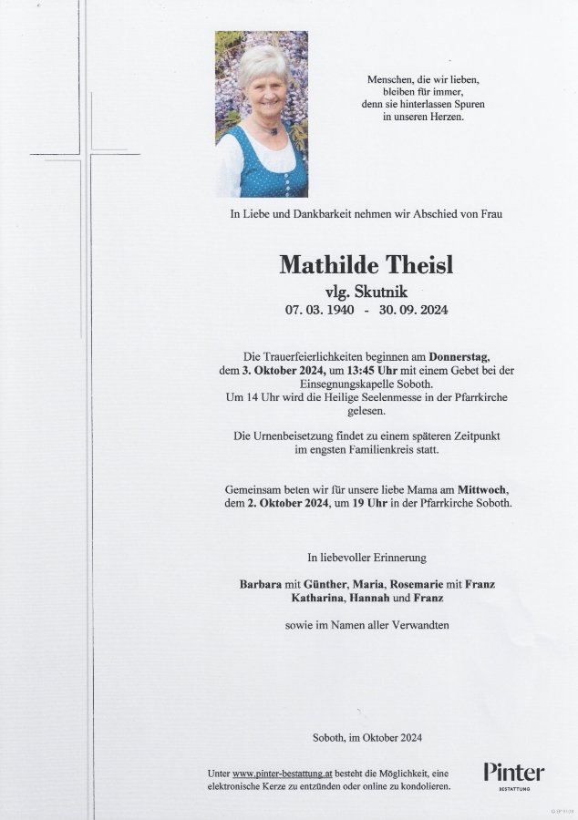 geboren am 7. März 1940 in Soboth gestorben am 30. September 2024 in Soboth