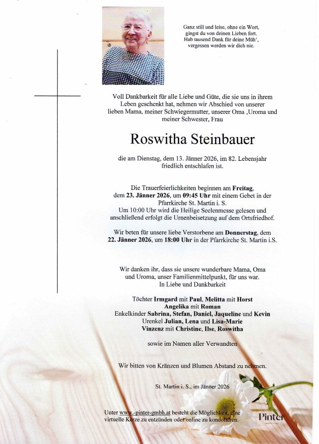 geboren am 14. Januar 1944 in - gestorben am 13. Januar 2026 in Pölfing-Brunn