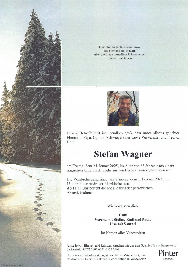 Die Trauer über diesen Verlust eines großartigen Menschen, der viele Rollen in seinem Leben eingenommen hat, ist groß. Er war Ehemann, Vater, Großvater und Freund. Ich danke Stefan für sein irdisches Leben.